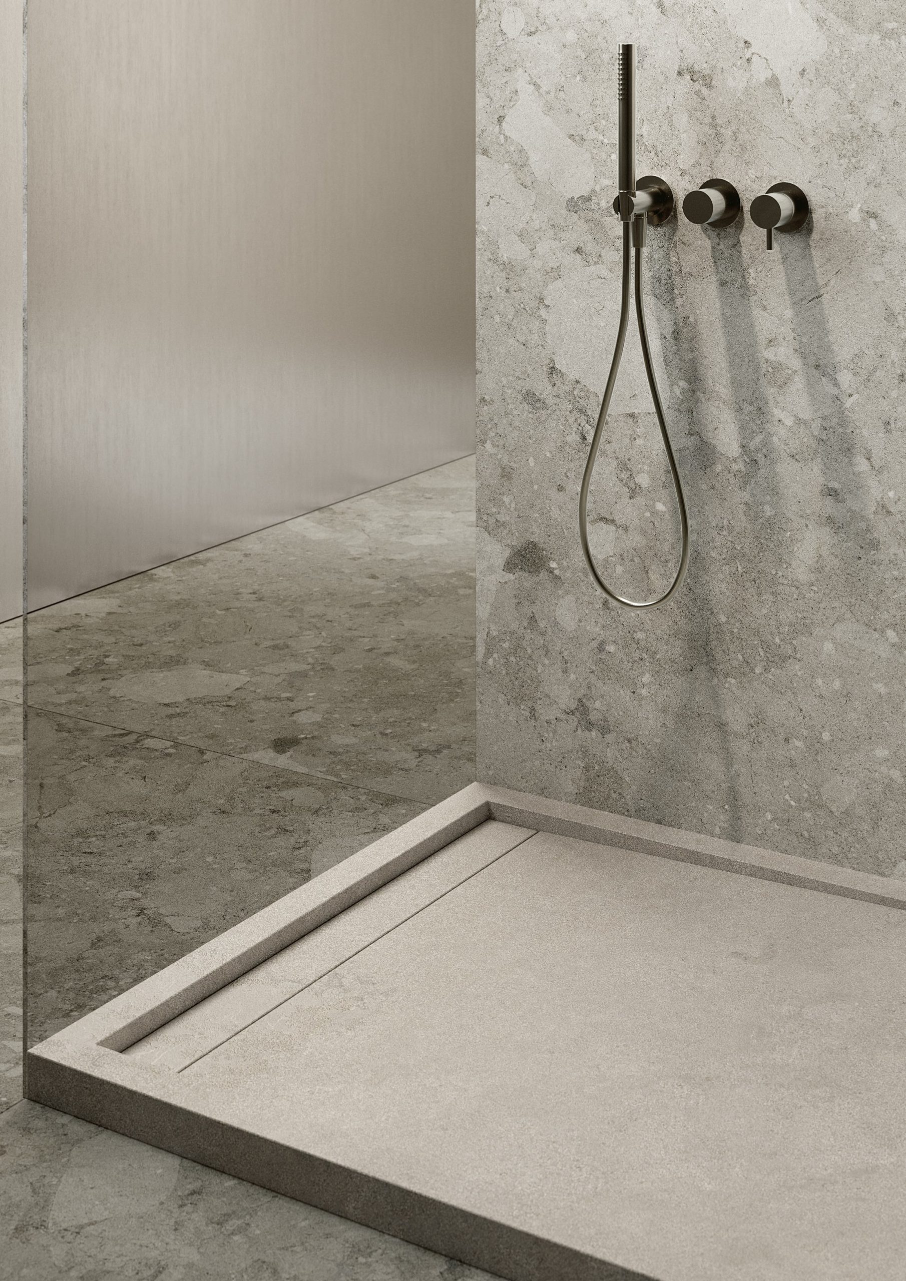 Απλές, κομψές γραμμές ορίζουν το Drift, μια άψογα λειτουργική ντουζιέρα με ενσωματωμένο ελεγχόμενο κανάλι αποχέτευσης. Κατασκευασμένη από πορσελάνινη πέτρα με βαθμονομημένη κλίση για τέλεια αποστράγγιση, μπορεί να εγκατασταθεί είτε στο ίδιο επίπεδο με το δάπεδο είτε ανυψωμένη. Η συνέχεια μεταξύ οριζόντιων και κάθετων επιφανειών δημιουργεί ένα αδιάλειπτο, πρακτικό περιβάλλον.