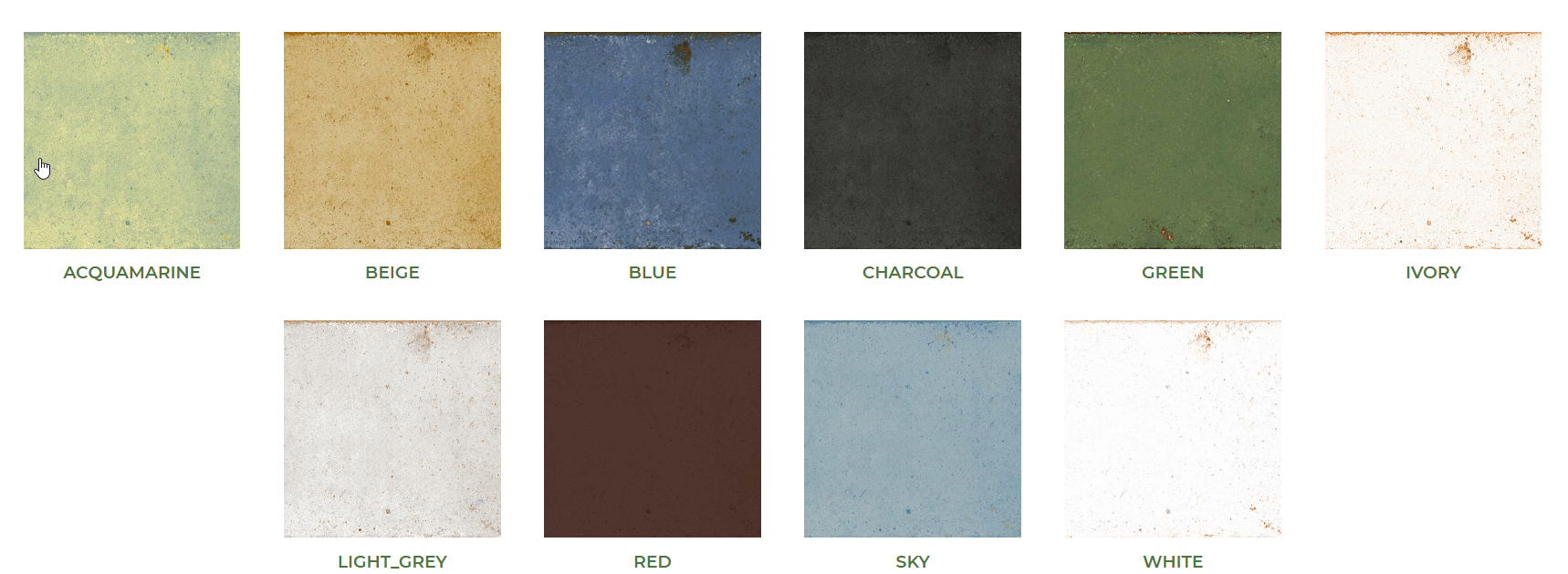 Εξίσου ιδιαίτερες είναι οι Aquamarine και Green, εμπνευσμένες από τις αποχρώσεις της φύσης, καθώς και οι κλασικές Charcoal, Beige και Red για πιο αστικούς και «ζεστούς» χώρους.