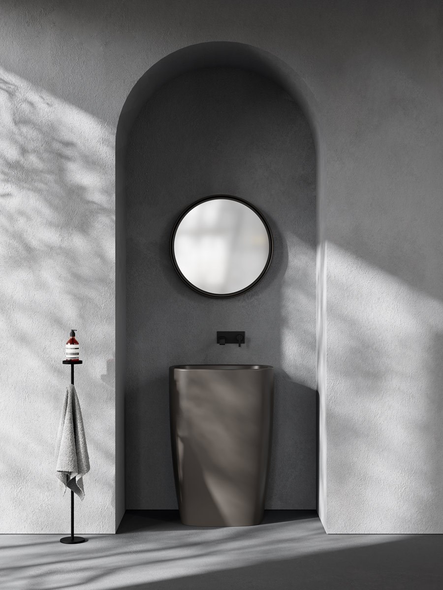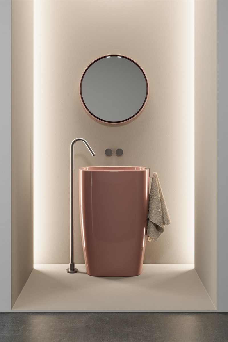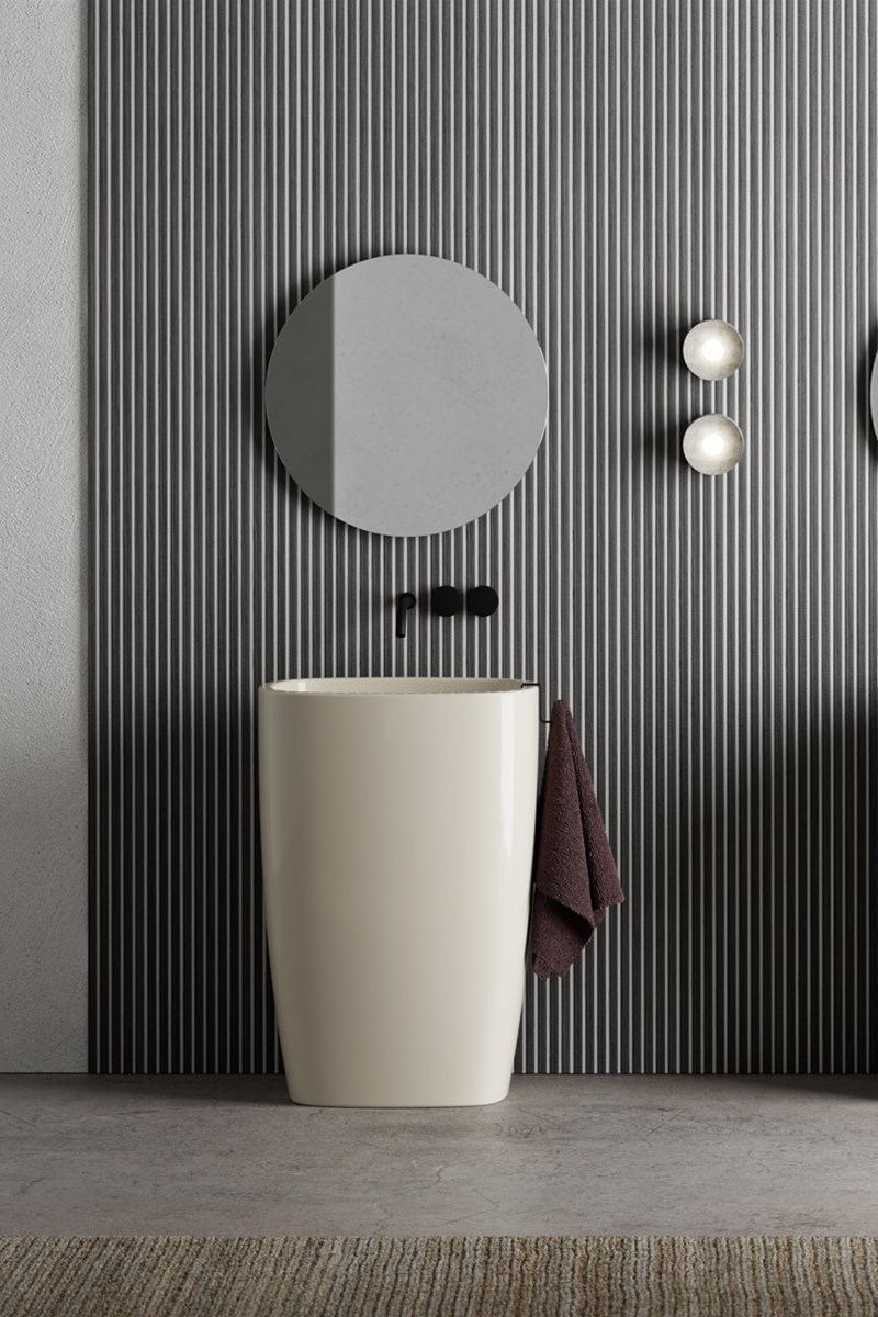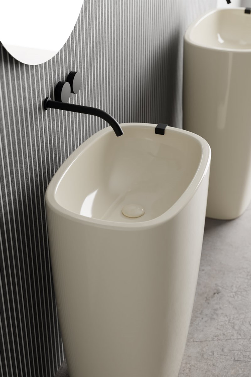 Ανεξάρτητος μαρμάρινος νιπτήρας, κατάλληλος για σύνδεση αποχέτευσης στον τοίχο ή στο δάπεδο, παρέχεται με σιφόνι και επεκτεινόμενη σύνδεση.