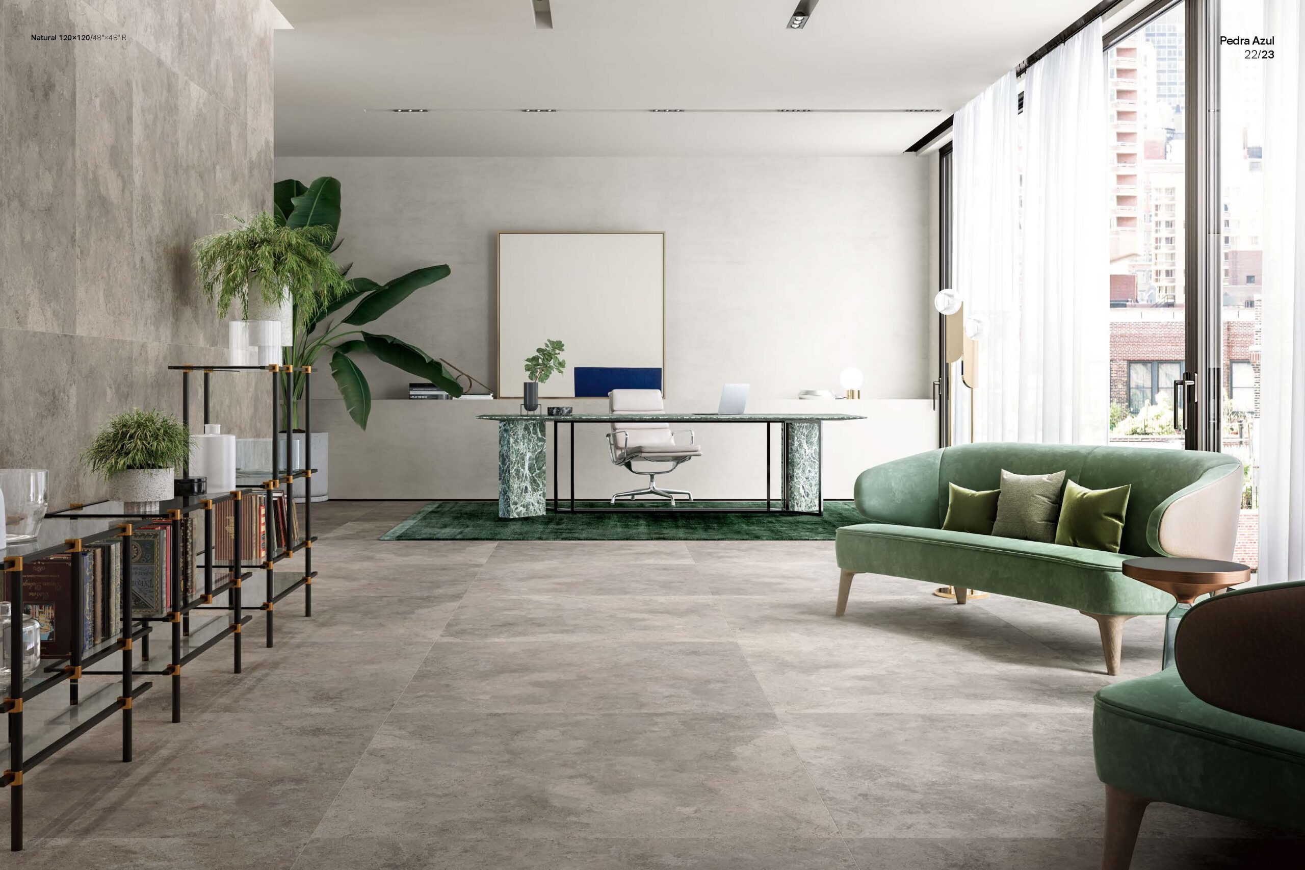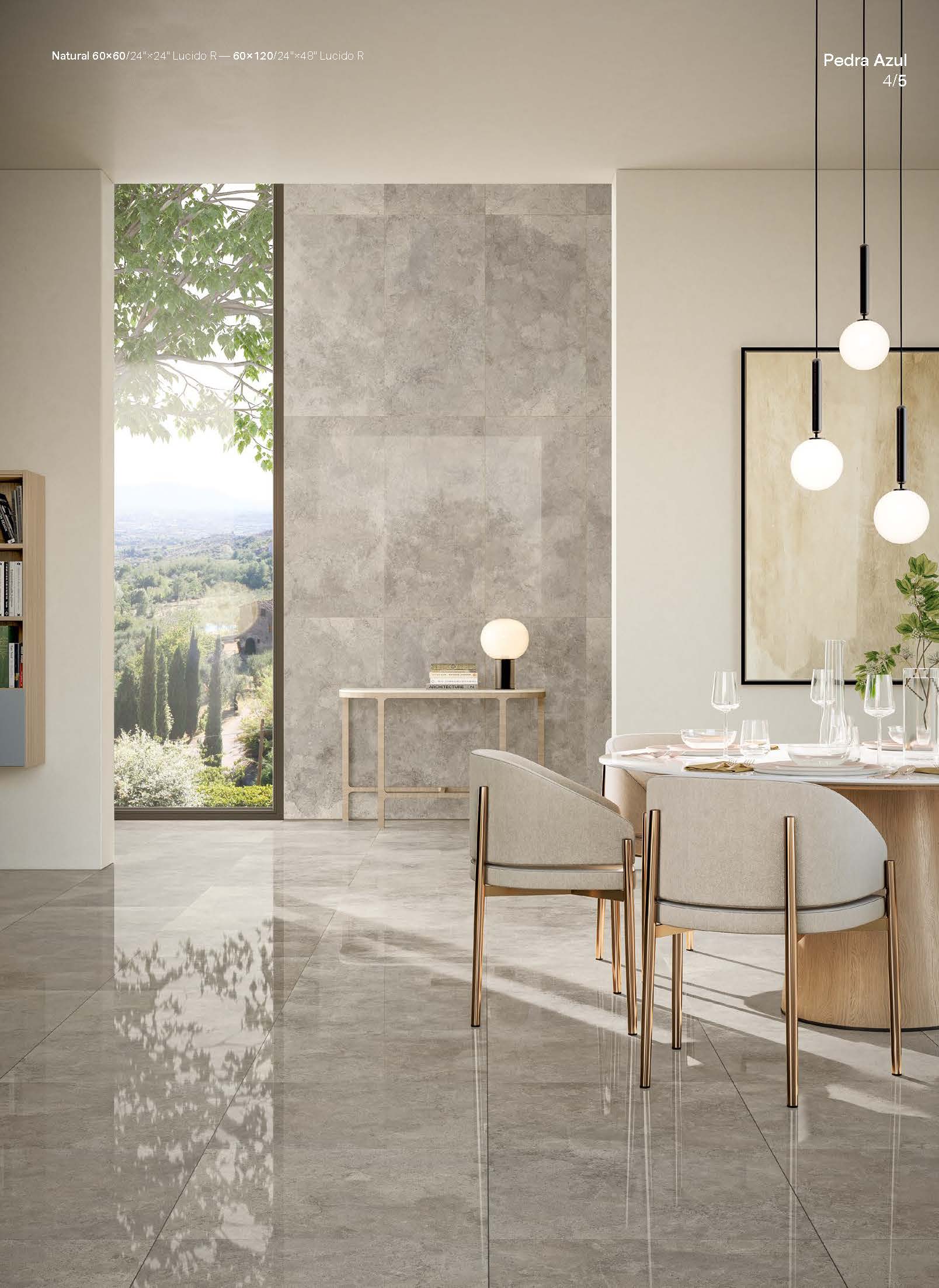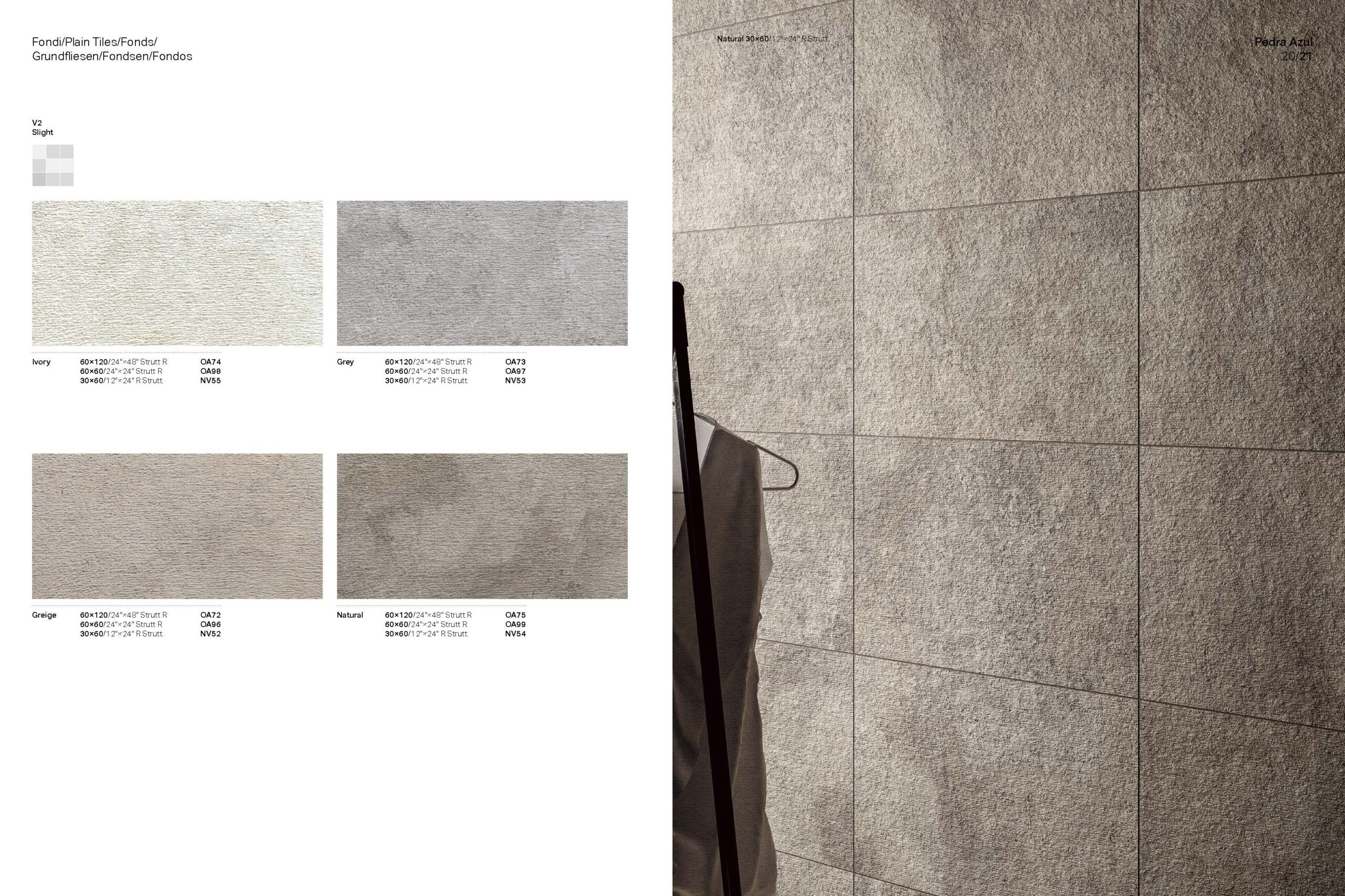 Η Pedra Azul αντλεί έμπνευση από έναν ασβεστόλιθο που προέρχεται από την Ιβηρική Χερσόνησο και χαρακτηρίζεται από μια ελαφρώς κυματιστή γραφική παράσταση, στην οποία εναλλάσσονται φωτεινές περιοχές και σκούρα σημάδια σε σχήμα δακτυλίου, με έξυπνη ισορροπία μορφών.