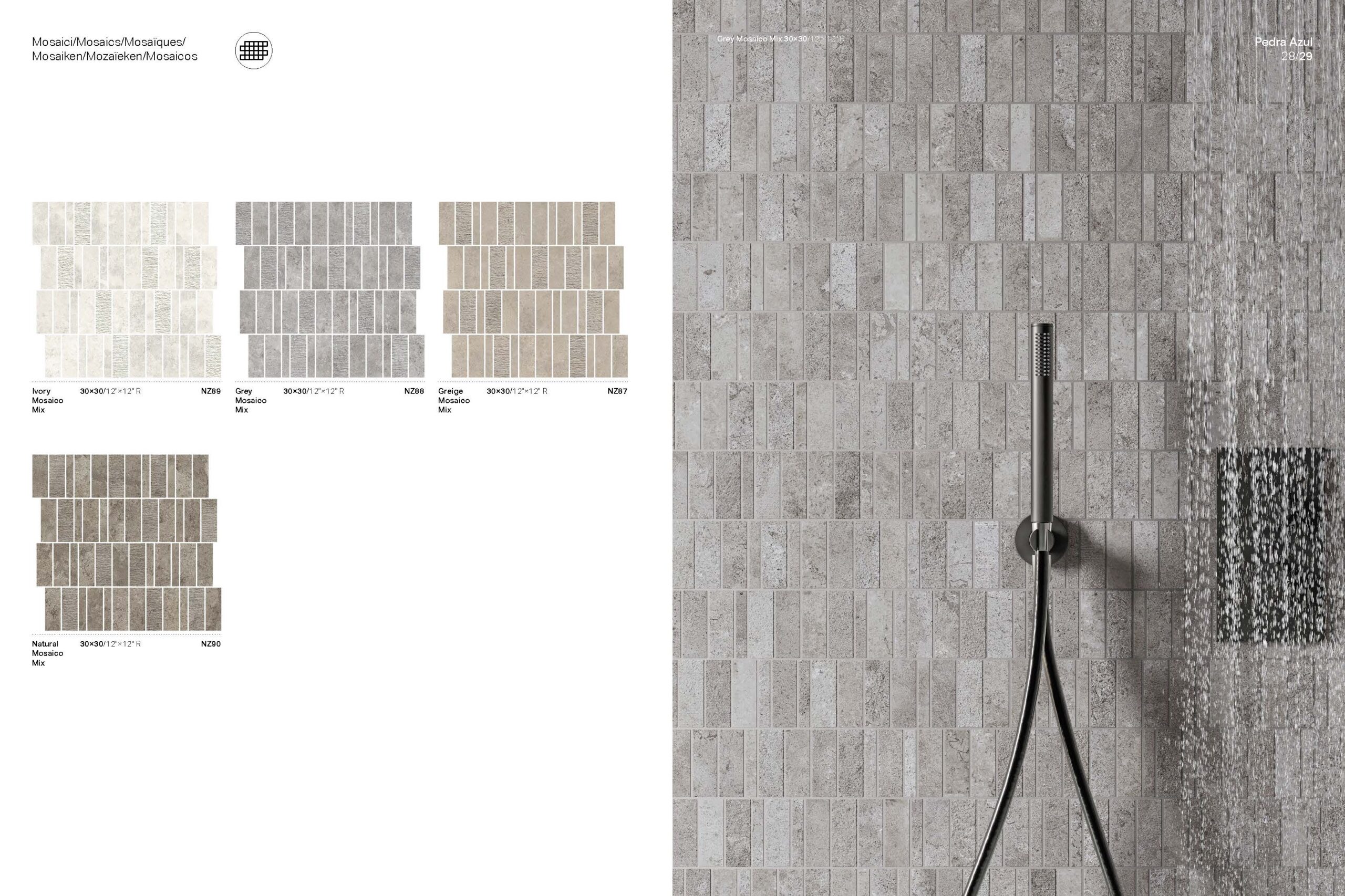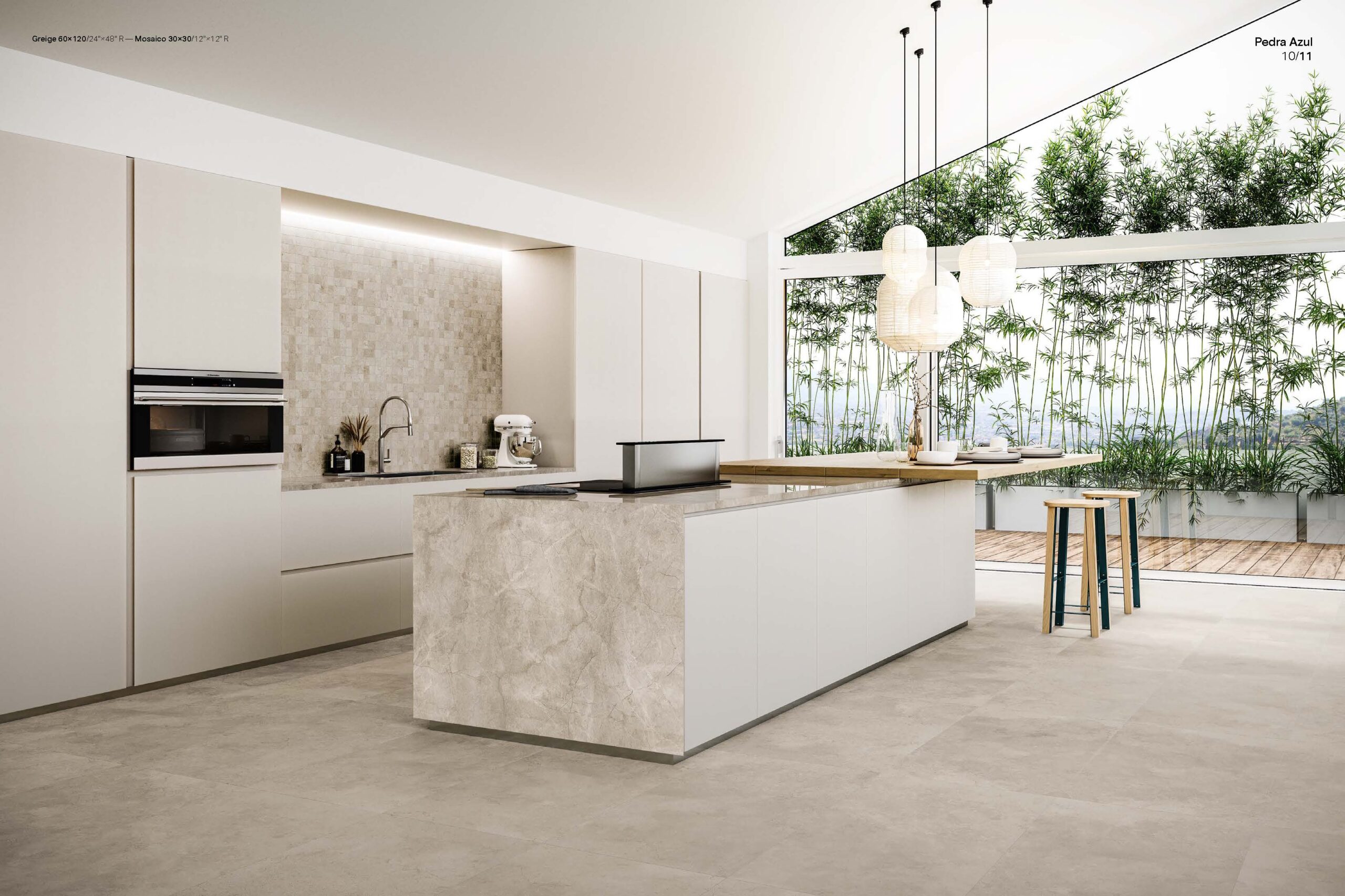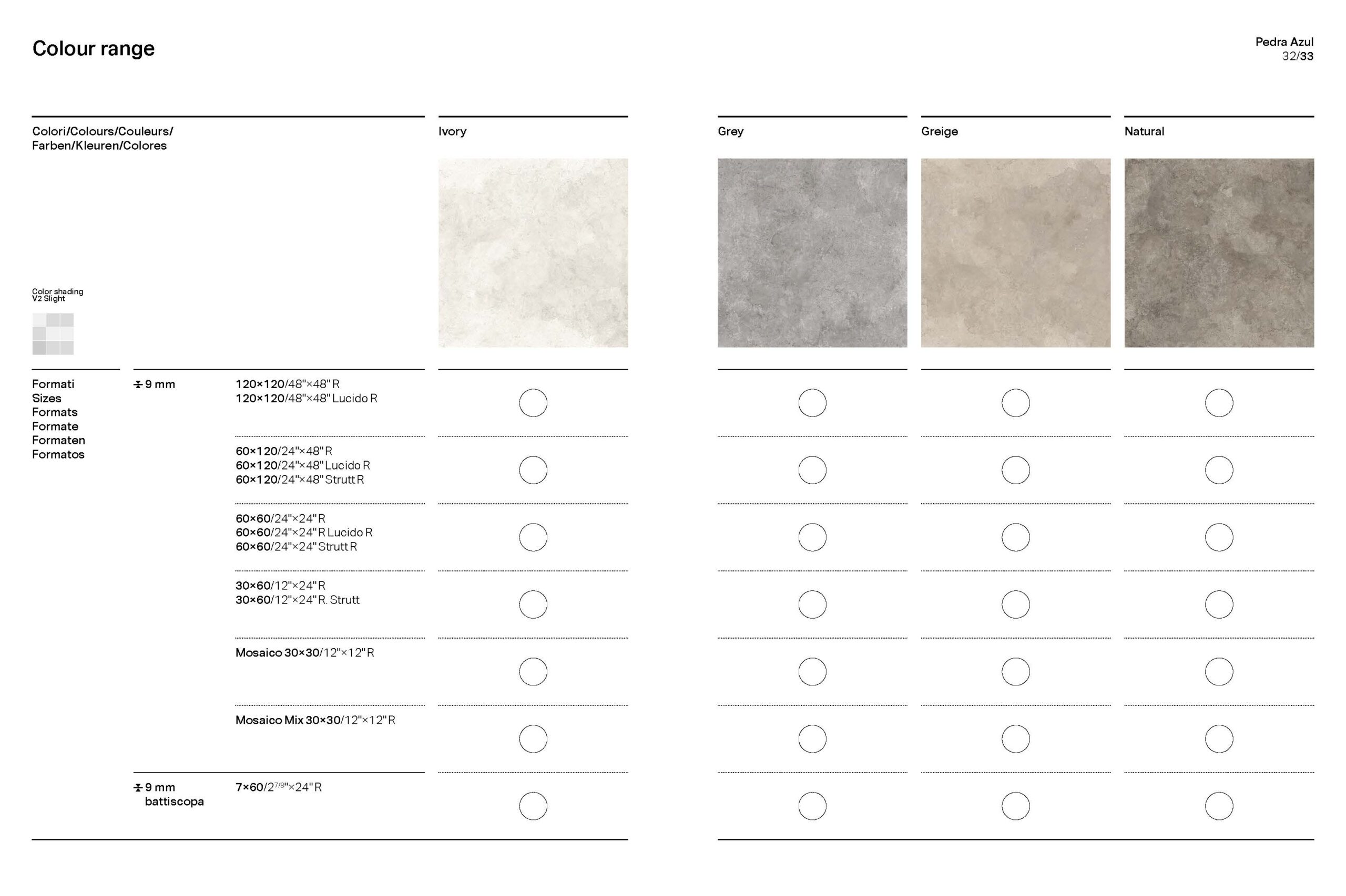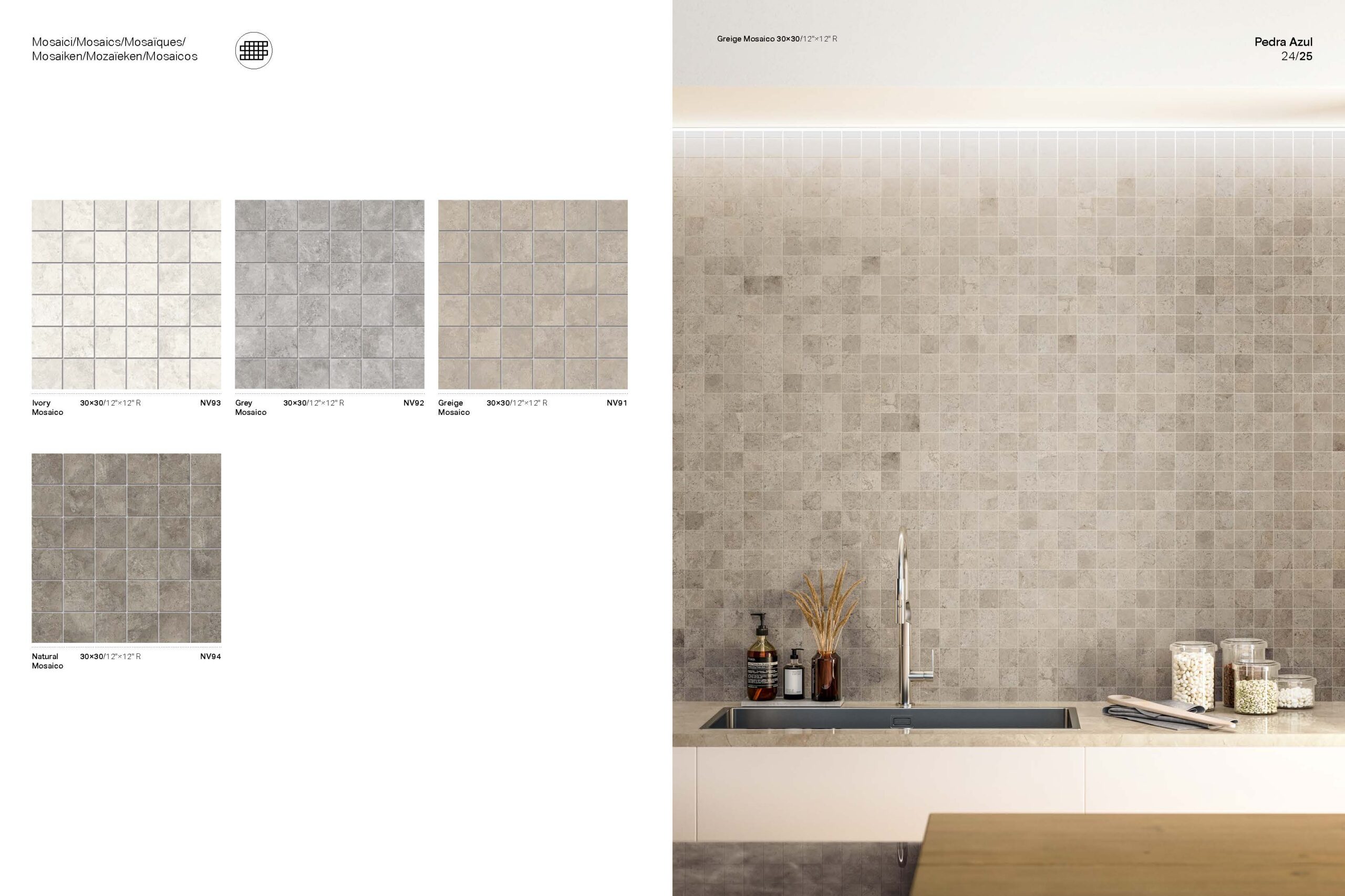 Η Pedra Azul αντλεί έμπνευση από έναν ασβεστόλιθο που προέρχεται από την Ιβηρική Χερσόνησο και χαρακτηρίζεται από μια ελαφρώς κυματιστή γραφική παράσταση, στην οποία εναλλάσσονται φωτεινές περιοχές και σκούρα σημάδια σε σχήμα δακτυλίου, με έξυπνη ισορροπία μορφών.